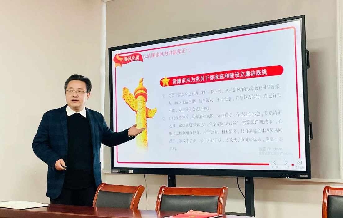 会上,刘春安为全体教师上了一堂主题为“树立清廉好家风”的廉政党课,从“以正反典型为镜思齐自省”“以清廉家风为训涵养正气”“以优良家风为本真抓实干”三个方面引导全体教师在今后的工作中,要以正面典型为“镜”,抓牢示范教育;以反面典型为“戒”,抓牢警示教育;始终感知初心、坚守初心、践行初心,时刻保持警钟长鸣,做到知敬畏、明底线、守规矩。