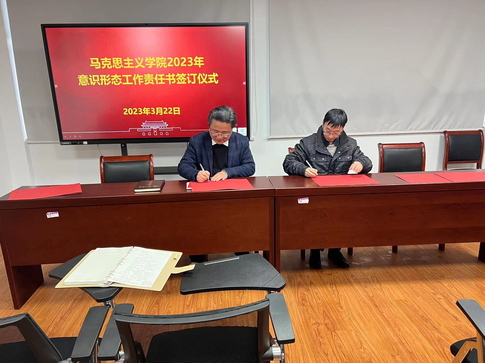 随后,举行了2023年意识形态责任书签订仪式,该院党总支书记刘春安与教工党支部书记、各教研室主任签订了《中共3044am永利官网委员会意识形态工作责任书》。