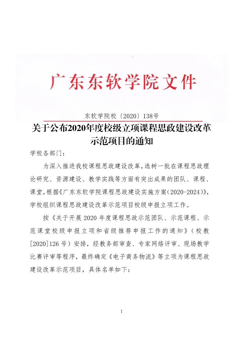 关于公布2020年度校级立项课程思政建设改革示范项目的通知