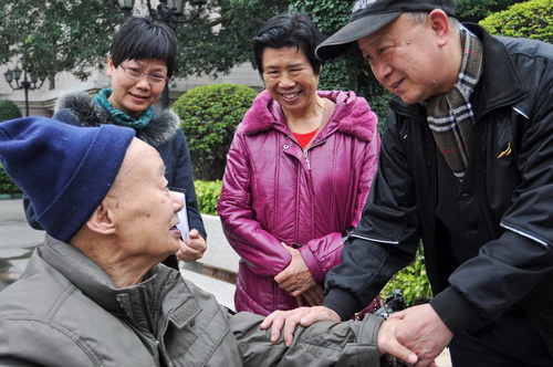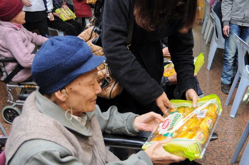青志队同学把带来的礼物分派给每位老人,围在老人的身边和老人们亲切交谈,亲切地聊天,细致询问他们的身体状况和生活情况。老教师对个别有心理障碍的老人进行心理沟通与疏导,倾听他(她)们的诉说,了解他(她)们的心声,使他们得到安慰,解开了心结,感受到了爱心和温暖。其中一位老人激动地拉着记者的手,久久不肯放开。师生们的热情、欢快的笑声,使老人们倍感温馨。