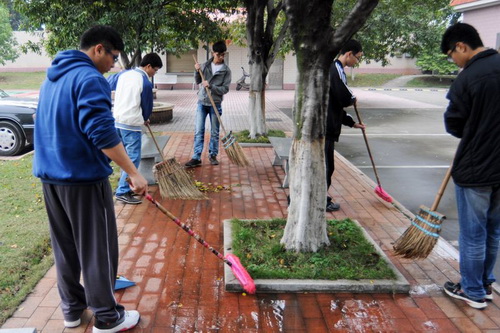 其他志愿者也分别按照各自分工忙碌开来。师生们兵分几路,有的做清洁,有的打扫院落,有的亲切地坐在老人身边与老人聊天,有的忙于为残疾孤儿干一些力所能及的事。