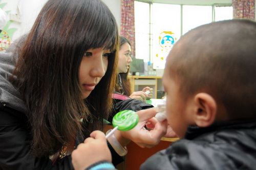随后,师生前往孤儿院,探望孤残儿童,与孩子们一起玩游戏、唱歌、照相,孩子们笑容满面,兴高采烈,幼小的心灵充分感受到了大哥哥、大姐姐的关心和关爱。