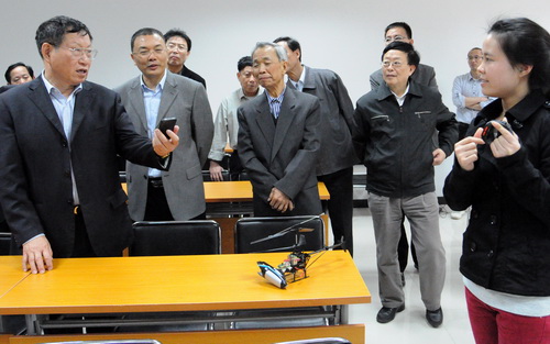与会领导对我院的发展现状、办学特色、办学理念表现出浓厚的兴趣。俞仲文结合他所了解的德国、韩国等国家的教育机制与体制,肯定高职高专院校的重点是培养“技术技能型人才”,对我院的“1321”实践教学模式给予了较高评价。