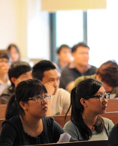 索尼员工向学生讲解索尼公司文化。(苏顺彬 摄)