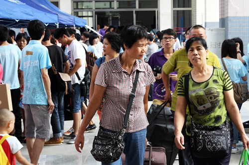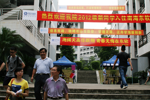 来自肇庆的张女士说:“我儿子很独立,我希望他能认真读书,为自己争取更好的发展机会。” 汕头的李煜和陈学敏同学首次来学院,但一点都不觉得陌生,“地接”早已拉着她们在校园里转了半天。她们说:“东软学院的名气,是通过老乡的口碑传开的。”这一说法得到数字艺术系主任闫远兆的认同:“数字艺术系的学生90%以上都是老乡、亲戚、朋友互相介绍报考的。”也有一些新生“单枪匹马”报到,信管系王舒婷同学自己打的前来,她告诉记者:“我想锻炼一下自己,学会独立,不再老是依赖父母。而且,我刚下车就有志愿者帮我搬行李,带我去宿舍,让我很感动。”来自湛江的罗晓辉和罗晓东是亲兄弟,他们同时以第一志愿考入东软学院,对校园印象很好,未来三年会努力学习专业,让自己的大学生活丰富多彩。来自珠海的梁咏妍同学说:“我觉得东软的环境很好,老师和师兄、师姐们很热情,我希望能在这里学到更多知识,让自己有一个好的未来。”在现场,计算机系辅导员黄勇贵老师一眼认出已毕业两年的学生邓富方。师生相聚,非常惊喜和激动。邓富方告诉记者:“表弟杜炜杰今年考取了东软学院,今天除了陪他来学校报到、注册,也借机探望母校。毕业两年,母校建起许多欧式风格的教学楼,发展速度很快,比以前更美了。”作为2012级计算机系新生,杜炜杰说:“校园跟我想象中的一样美丽,我很期待精彩的大学生活开启。”