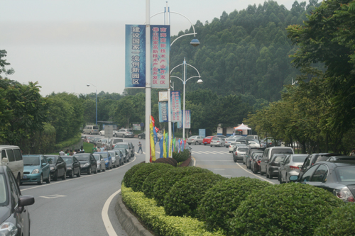 校园观光车便于新生和家长参观校园。往返于校园和宿舍区的中巴,则满载着新生和家长以及他们的行李一趟趟“奔波”。整个狮山大学城的各条道路都塞满了车,若不是交警指挥有序,秩序准会变成“一锅粥”。而了解东软学院情况的人则对每年9月的“东软车展”会心一笑。