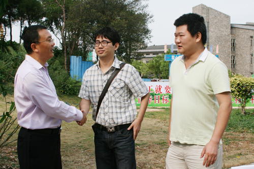 当天上午9点钟,在深圳工作的蔡思以及在佛山工作的李博环引领工作人员将纪念石运抵我院,工作人员使用吊车安放纪念石。期间,院长杨利博士与党委书记齐志儒一同来到现场,与校友亲切交流。