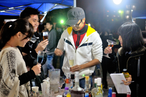 11级软件开发专业2班的李嘉宝同学的摊位在本次淘宝活动中特别引人瞩目,五颜六色的杯子、五颜六色的瓶子在灯光下营造出一种光怪陆离的有趣景象,他不卖小吃只卖苏打酒和鸡尾酒。摊位摆设别出心裁,不要粗放,他要精致。在谈到为什么要设立苏打酒、鸡尾酒摊位时他说:“我留意到往界淘宝市场里缺少此类摊位,我和同伴想大胆创新,于是从洋酒行里进货,预备了不同种类的苏打酒和鸡尾酒,满足不同客户。” 李同学对创业这条路有着浓厚的兴趣,虽然年轻但也老练,他计划积累足够的工作经验和人际关系后再正式踏上创业这的路。
