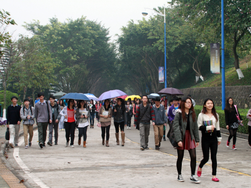 本网讯(记者 一湄)2月26日,清晨的狮山,笼罩着迷蒙的烟雨,8点刚过,校道上已经都是前来上课的同学。经过一个寒假休整,同学们带着喜悦的微笑和青春的朝气,提着笔记本电脑、背着书包,奔向A座、B座、C座、E座教学楼,以饱满的精神状态走进他们熟悉的教室,投入新学期的学习。