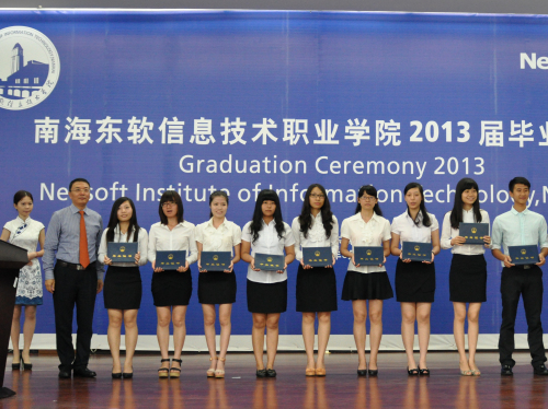 毕业典礼结束后,学院领导与毕业生合影留念,此时的东软校园,已然成为一片欢乐的海洋。一幅幅场景、一张张笑脸,从EF座到体育场,AB座到星光大道,再到阳光在线,在这条再熟悉不过的校园线路上,喜悦和幸福瞬间被传递,激情和热情同时重相聚,期待和祝福在每个人心中流淌。
