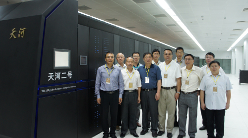 广州超算中心主机系统“天河二号”由国防科学技术大学计算机学院研制,其系统是国家863计划和核高基重大专项的标志性成果,是新一代银河高性能计算机关键技术突破的成功应用,一期系统峰值计算速度每秒5.49亿亿次、持续计算速度每秒3.39亿亿次、能效比每瓦特19亿次,双精度浮点运算,位列在2013年6月、11月世界TOP500排行榜第一,综合技术水平处于国际领先地位,是我国超级计算技术发展取得的重大进展。中共中央总书记、国家主席、中央军委主席习近平同志对天河二号超级计算机系统研制成功作出重要批示:“天河二号超级计算机系统研制成功,标志着我国在超级计算机领域已走在世界前列。