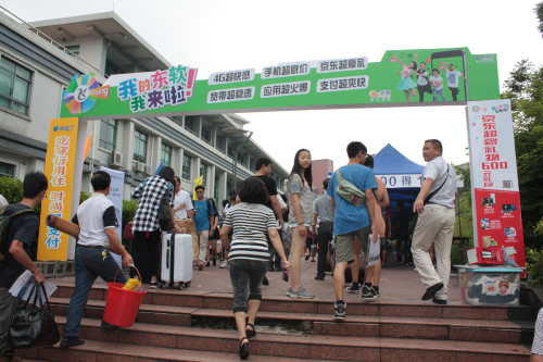 校园里熙熙攘攘的新生及家长
