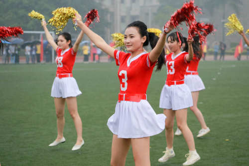 我院升格本科院校后的首届体育盛会喜见好秋雨,更是激起了同学们的积极性,三百多名同学组成的啦啦操表演队在主持人的号召声中拥上赛场,他们中绝大多数是大一新生,为了这次表演他们经常利用午休时间训练,这一刻他们的激情在赛场上释放。三百多名同学默契合作,变换队形,用不同颜色的扇子拼凑出2014的字样。这是一场青春的盛宴,雨绵绵阻挡不了同学们的脸上灿烂的笑容。除了啦啦操,“斧头舞”表演也是引来在场观众纷纷“点赞”,黑色西服,黑色爵士帽,冷酷的表情,将“星爷”导演的《功夫》里的情节搬到了雨中东软,另有一番风味。