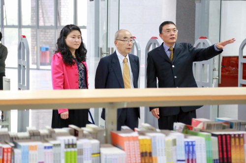 在南方温煦的午后,沓泽虔太郎先生与杨利院长徜徉于东软校园,参观了图书馆、教学楼等。参观过程中,杨利院长与沓泽先生等人畅谈我院教育教学理念与办学之道。