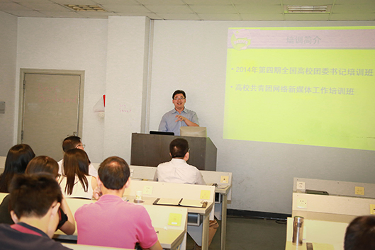 陈润坚副书记分享了他参加2014年全国第四期高校团委书记培训班及高校共青团网络新媒体培训会的所思所获,包括高校共青团工作如何应对网络新媒体带来的挑战,如何正面引导移动互联网所对青年学生带来的影响以及团学工作如何在新时期新条件下担任起民族复兴崛起的历史使命。