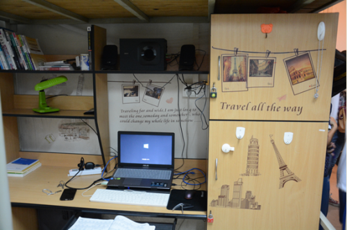 5月至6月,2014级网络工程6班进行了“宿舍文明评比”大赛。如果说学校的生活是一部宏大的乐章,那么宿舍的生活可就算得上是一个个小音符。大乐章的动听离不开小音符的优美,宿舍里的生活便是那如精灵一般的小小音符。为了参加宿舍美化评比大赛,几乎每一间宿舍都有进行了精心布局。