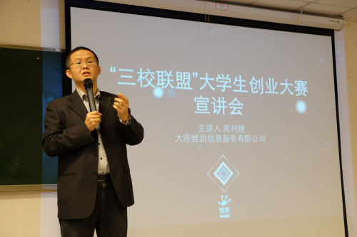 本网讯(记者 李娜 余蝶妹 张柳珏 冷文韬 陈丽敏)11月25日下午和晚上,2015—2016年东软“三校联盟”创业大赛宣讲会分别在BG06报告厅和B115大教室举办了两场。东软控股的从事创业教育的互联网公司,大连蛙页信息服务有限公司主办本次大赛,该赛事针对广东、大连、成都三所东软学院的同学,比赛历时七个月,决赛冠军不仅可以获得一万元奖金,还可以和东软集团CEO刘积仁共进午餐。