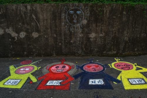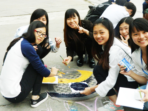 本次活动吸引八十多个小组报名参赛,有个人参赛的也有小组参赛的。他们先用粉笔在沙井盖上打草稿,随后用红、白、黄、蓝色水粉进行调色,在沙井盖上涂下一个个“脑洞大开”的创意图案,有趣的涂鸦让路过的同学们都忍不住要和换了“新装”的沙井盖驻足留影。