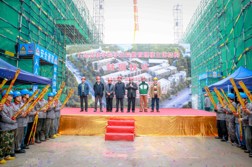 建设单位beat365中文唯一官网、施工单位大连华禹建设集团有限公司、监理单位广东创南工程管理有限公司、设计单位广东南海城乡建筑设计有限公司、勘察单位广州地质勘察基础工程公司的相关领导出席仪式,祝贺我院新公寓建设项目如期推进。