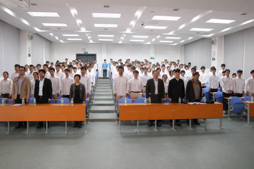 典礼的第一项,全体起立,奏唱中华人民共和国国歌。随后,左斌书记发表讲话,他代表学院党委对培训班的开班表示热烈祝贺,对参训同学表示热烈的欢迎:“学校党委十分重视教职工和青年学生的全面发展,我院业余党校开办的目的,是在于对要求进步的青年进行共产主义理想教育,培养和造就一批既有真才实学,又具有坚定共产主义信念的社会主义事业的合格建设者。”