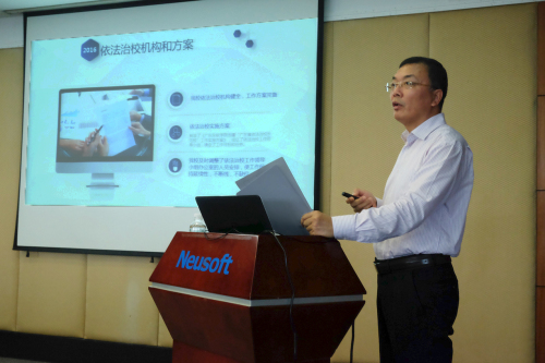 会上,戴庆洲对我院在2008年被认定为省级依法治校示范校表示赞许。他提到,为加快我省依法治校工作步伐,推进我省教育治理体系和治理能力现代化,广东省教育厅决定从2014年起连续5年,在全省开展创建1000所依法治校示范校工作。为了做好新旧示范校的衔接,以及推动东软学院继续起到起到良好的示范带头作用,专家组特此展开复评考察,希望借此进一步交流依法治校工作经验,检视不足。