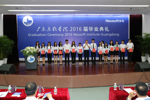 毕业典礼在感人的主题视频中拉开帷幕,同学们通过精心制作的视频,记录了在东软的青春岁月,描绘了对美好未来的憧憬,为2016届毕业生送上的祝福。随着主持人宣布毕业典礼正式开始,全场起立,奏唱国歌。