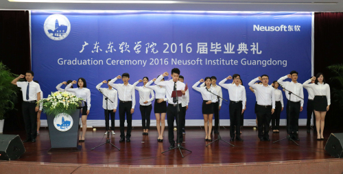 21名毕业生代表,在信管系毕业生邓敏杰同学的带领下,邀请全体毕业生起立,面对曾朝夕相处的师长庄严宣誓,表达了他们实现梦想、报效祖国的决心。
