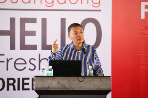 会上,院长杨利博士以《做一个和自己赛跑的人》为题给新生上了第一课,从东软是一所怎样的大学、有什么特点优势、?怎样度过四年的大学时光、怎样使自己的大学生活更有意义四个方面为新生们做了介绍。