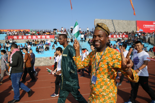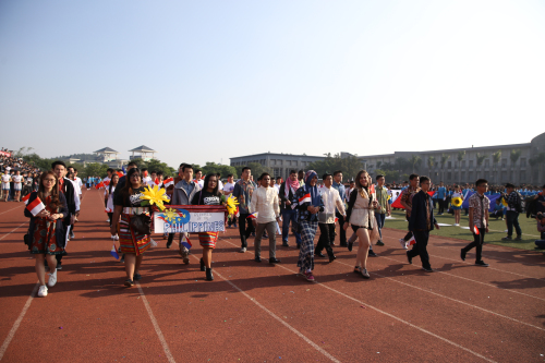 八点三十分,令人振奋的运动员进行曲奏响,入场式开始。国旗队、彩旗队、鲜花队率先入场,计算机系、信管系、数字艺术系、国际教育学院、国际合作部、继续教育学院各具特色的方队相继而来,各具特色的嘹亮口号,尽显我院学子的青春本色与风华正茂。其中,国际合作部方队的留学生们,穿着自己国家的特色服装亮相,把他们丰富多彩的文化艺术性地表现出来,昭示了他们昂扬向上的劲头与充满活力的精神气质,也展示了我院日益国际化的一面。
