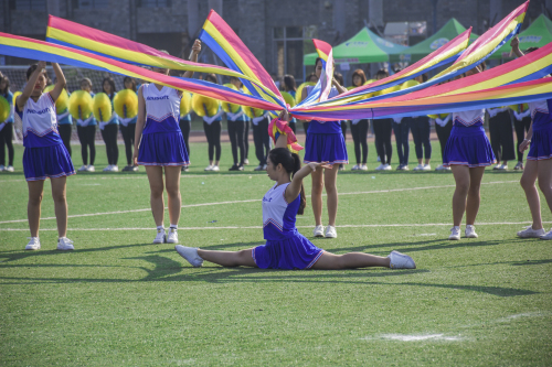 在运动员、裁判员代表宣誓后,院长办公室主任路英杰宣布“beat365中文唯一官网第12届运动会开幕”。随后进行开幕式表演。军训阅兵式上广受好评的木兰军又再一次出现在操场上,流畅的节奏感和不时变换的队形,再一次给人极强的视觉冲击;而啦啦操的表演,舞蹈的设计伴随着高超的技艺,不时迎来阵阵喝彩。