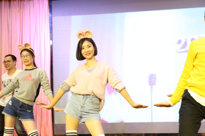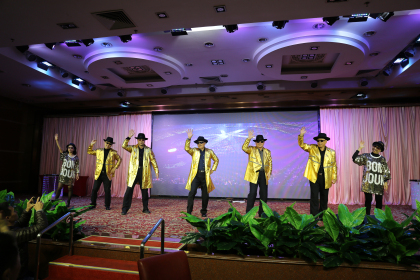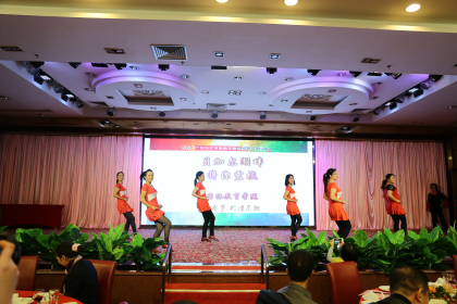 随后的表演中,信管系老师们带来的歌舞表演《新翼献瑞》,欢快而喜庆的舞蹈演绎出她们对生活的热爱和对幸福的追求,高昂的歌声唱出了对新的一年的无限希望;国际教育学院带来的舞蹈表演《贝尔加湖畔》和《将你震撼》,优美的民族舞与动感的热舞串联,舞姿清丽婉转,极具特色;计算机系的歌舞表演《Monica》无缝链接神曲PPAP,诙谐而动感,熟悉而烧闹的乐曲带领观众进入律动的世界,现场尖叫声连连;国合部的外教和老师同学们一起唱起了《International New Year Journey》, 嗓音优美独特,犹如天籁,边唱边跳,尽显国际范;而最有艺术细胞的数艺系一出场就带来了学院的3D全景校园,引得全场喝彩,随后进行的歌舞表演《疯狂的小鸡》,轻松幽默的风格让大家忍俊不禁;国际教育学院的歌曲联唱《我只在乎你》、《Yesterday Once More》《红军不怕远征难》,日语、英语加红歌的串联演唱,时而悠扬,时而铿锵有力,演唱撩人心弦,感情充沛,为观众们带来高品质的听觉享受,展现了我院强大的亲和力和凝聚力。