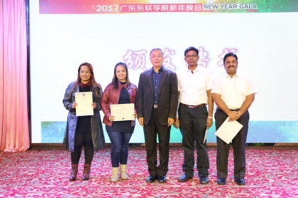 晚会现场,还对VIT大学的教授以及雅力集团的负责人颁发了感谢状,感谢Kumar教授、Arun教授在这一学期给我们学生带来的专业课程,感谢Jennylyn女士助力我院的国际招生,为东软带来源源不断的菲律宾生源。此外,晚会现场还对2016年最受欢迎教师、辅导员,先进集体、优秀个人进行了表彰。