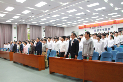 典礼第一项,全体起立,奏唱中华人民共和国国歌。随着雄伟庄严的国歌声结束,业余党校校长左斌同志发表讲话。他指出,我院业余党校开班的目的就是对于要求进步的青年进行共产主义理想教育,培养和造就一匹具有真才实学,又坚定共产主义信念的社会主义事业的灵魂建设者和可靠接班人。业余党校开班以来,已培养入党积极分子4305人。对于本期入党积极分子,左斌校长明确提出了增强学习紧迫感、端正入党动机和遵守党校纪律的三点要求,并强调“党的大门是向具有坚定共产主义信念,有为共产主义奋斗终身的先进分子所敞开的”,并希望全体成员“学有所思,学有所获”。