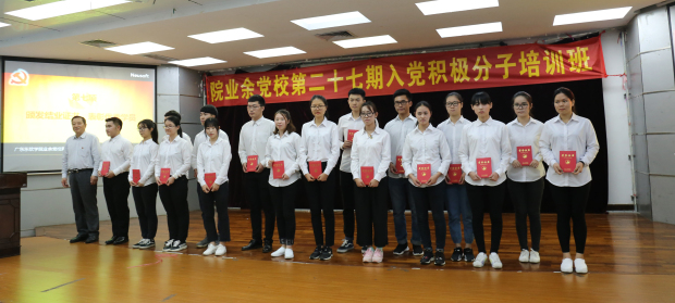 本网讯(记者 毕锦萍 黄绮华)4月26日下午,我院业余党校第27期入党积极分子培训班结业典礼在BG06报告厅举行,我院党委书记、业余党校校长左斌,数字艺术系党总支书记刘旭东,机关第七党支部书记汪静等出席了典礼。215名入党积极分子经过党校培训课程顺利结业,其中32名学员荣获“优秀学员”称号。