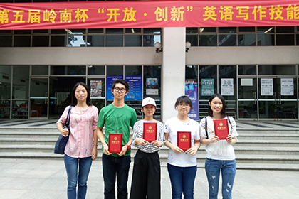 本网讯(通讯员 陈继娜 刘华)5月20日,广东省第五届岭南杯“开放﹒创新”英语写作技能大赛决赛在广东技术师范学院天河校区举行。我院首次受邀参赛,共获得3个3等奖、2个优秀奖。