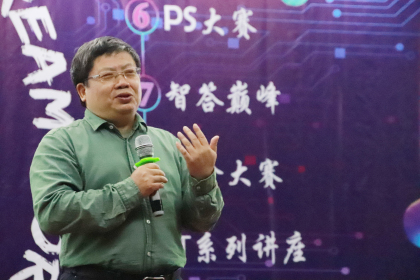 计算机系党总支书记李忠在开幕式上致辞,他指出IT技术与学习、生活息息相关。比赛的项目不单是靠技术,还要创意和想象,本次比赛面向全校学生,非计算机专业的同学不必担心参加比赛没优势。