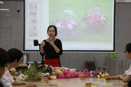 据悉,此次活动主要是让学员们亲手制作花束,向各自母亲传达感恩之情,因此花材特意选择了寓意爱与尊敬的康乃馨。选花、扎花,然后用绿叶衬托花束,用彩纸包扎……学员们跟随林芳老师有序完成一束束独一无二的花束,它们将在母亲节当天成为惊喜,被送到各自最爱的母亲手中。