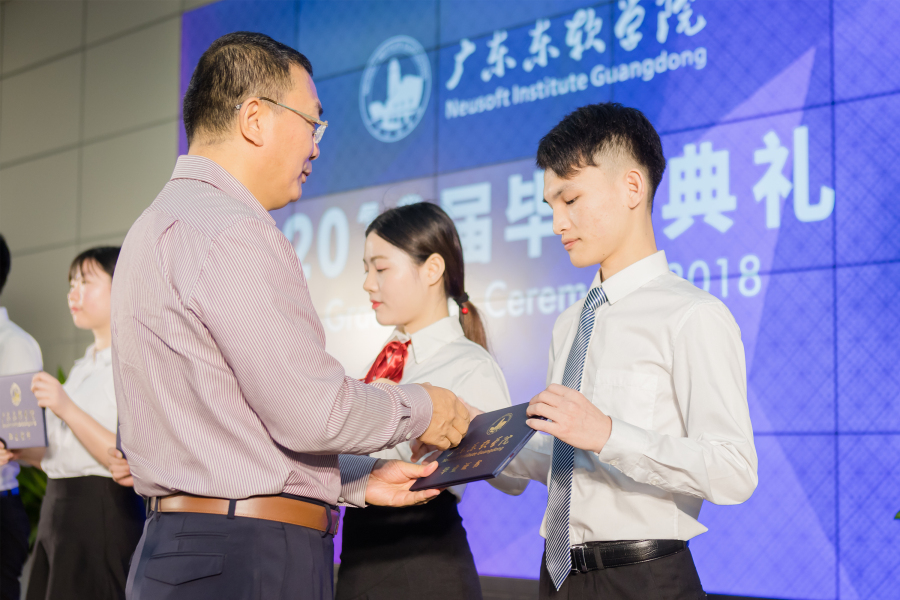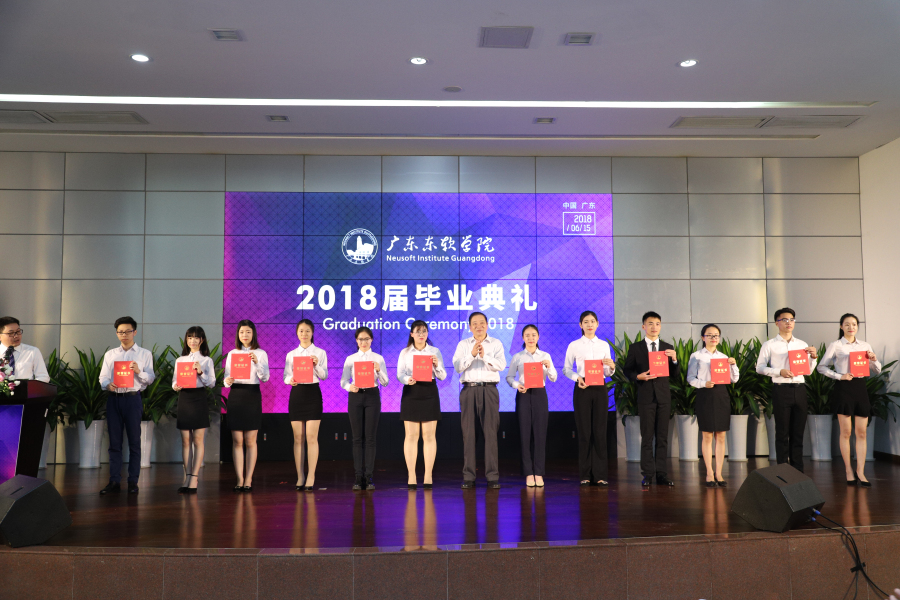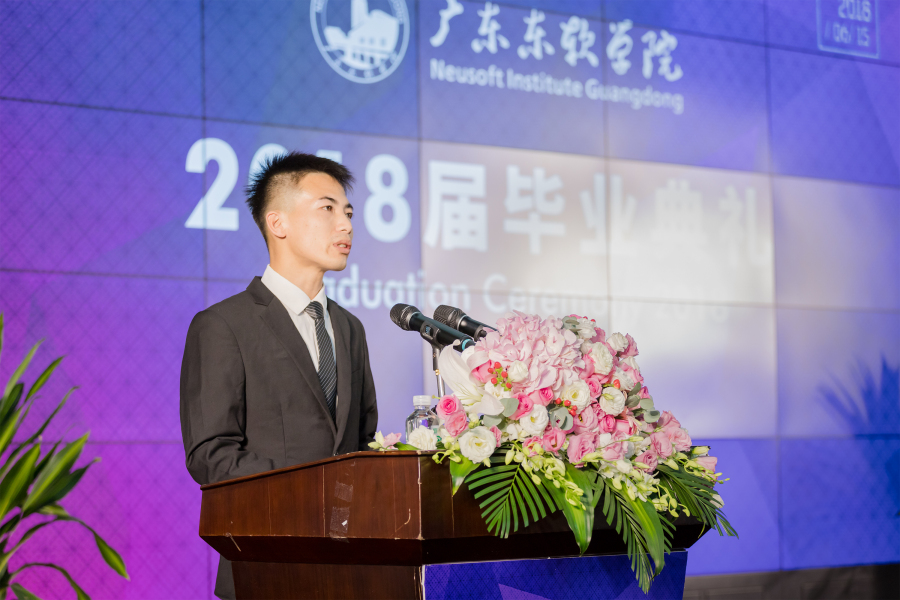 信息管理与工程系的教师代表包文夏表达了对毕业生美好未来的祝福,对毕业生提出适应社会、坚守梦想叮嘱,并强调“广东东软因你在的每一天而精彩,希望有一天,广东东软以你为骄傲。”