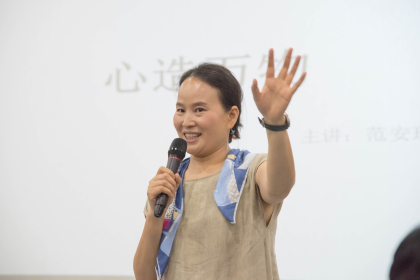 讲座上,范安琪分享了自己与陶瓷的故事及陶瓷美学心得。她表示,“陶艺作品上的艺术语言是境由心造,美的正知正见是由内在的修养、阅历、体验,以及对事物的感动、敬畏升华转化后出来的。”