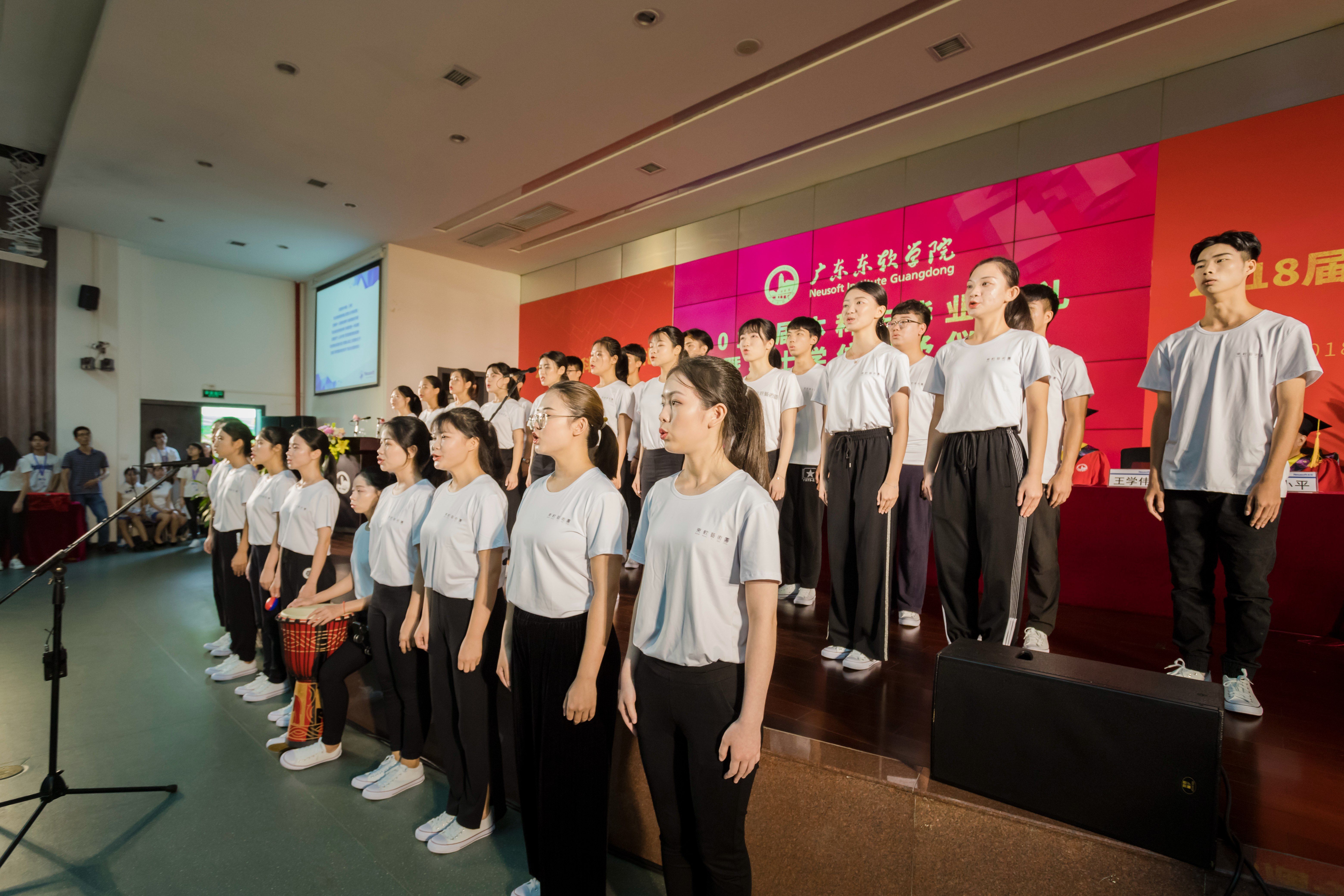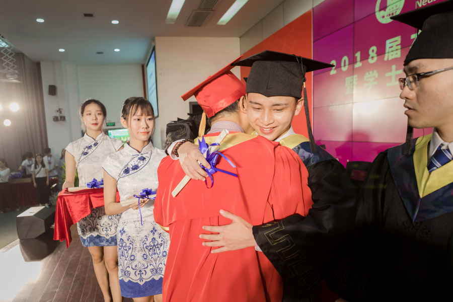 优秀毕业生代表,计算机系电子信息工程专业2014届本科生彭俊东代表首届本科毕业生发言,分享了他在东软的求学感悟,表达了对母校、学校领导、老师、家人以及同学的感激之情。在大学四年,他收获了友情、收获了荣誉、也收获了爱情,在他看来,在大学里学到的学习方法和学习态度是终身受益的。“东软学子身上纹,从此大家社会人”, 彭俊东的发言引发了在场毕业生的欢笑声与掌声。