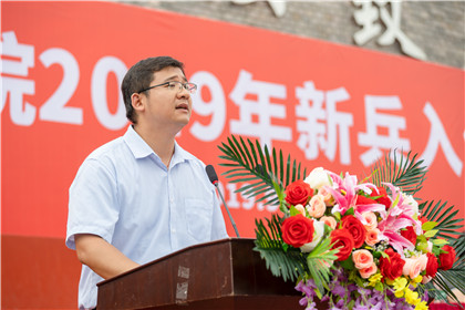 2019年入伍新兵代表陈宇代表全体入伍大学生发言,表达了对学校培养的感恩之情、在部队艰苦奋斗的决心以及对全体军训学生的寄望。王佩玲老师代表全校老师,对入伍新兵提出三点希望,希望他们牢记使命,牢记军人的基本要求,牢记学校、家长、老师的嘱托。罗森明组长重点介绍了国家对退伍军人的各项优待政策。