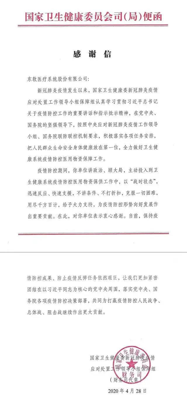 重磅!国务院给东软医疗发感谢信