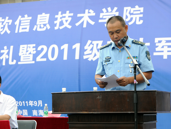 大会分两个阶段进行,第一阶段是2011级新生军训阅兵仪式暨总结表彰大会。