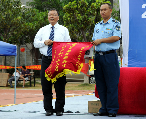 杨利院长代表学院向承训部队赠送了锦旗和纪念品。