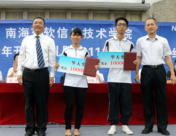 副院长刘春雨、成侃分别宣读了2010-2011学年先进集体和优秀个人的表彰决定以及东软学院最高奖学金华天奖学金的表彰决定。院领导和企业代表分别为获奖的集体和个人颁奖。接着,华天奖学金获得者代表、教师代表、新生代表和企业代表在会上分别作了发言。