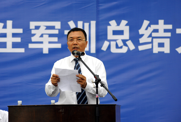 随后,副院长齐志儒教授发表了军训总结讲话,他首先向一直战斗在军训第一线的全体教官们和辅导员、表示衷心的感谢和亲切的慰问,对圆满完成今年军训任务的2011级全体新同学们表示热烈的祝贺,同时总结了这次军训取得的成果。同时,他希望全体新同学在即将开始的大学生活中,继续把军训中培养的好思想、好作风发扬下去,努力成为一名合格的人才,以优异的成绩报效祖国、报答父母。